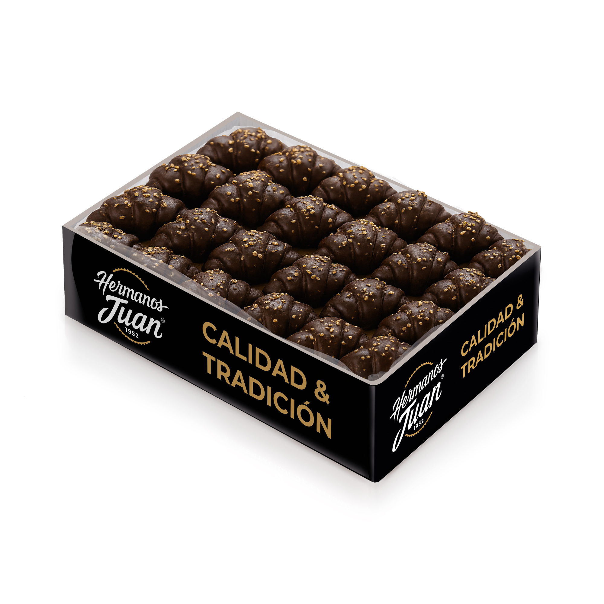 Cobertura especial con grasa vegetal (30%) [azúcar, grasas vegetales (palmiste, palma) en proporción variable, cacao desgrasado en polvo (16%), emulgente: lecitina de SOJA y aroma], harina de TRIGO, agua, grasa de palma, azúcar, jarabe de glucosa y fructosa, HUEVOS (1%), ALMENDRA tostada 1%, levadura, emulgentes: E-471, E-472e y E-481, sal, LECHE en polvo, aceite de girasol, proteínas de la LECHE, estabilizantes: E-466 y goma guar, conservador: E-202, aromas y colorante: carotenos. HUEVOS de gallinas sueltas en el gallinero. Puede contener trazas de mostaza, granos de sésamo, otros frutos de cáscara y/o productos derivados.