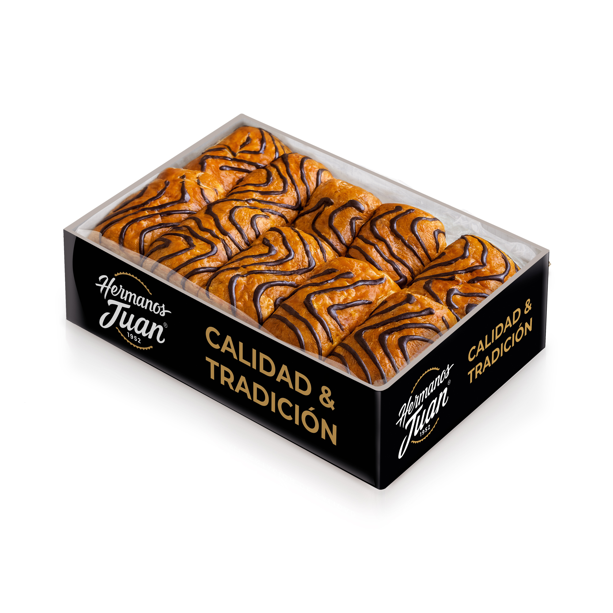 Harina de TRIGO, relleno cacao (28%) [azúcar, grasa de palma, cacao desgrasado en polvo (12%), almidón de patata, AVELLANAS (2%), emulgentes: E-471 y lecitina de SOJA y aroma], grasas vegetales ( palma, palmiste totalmente hidrogenado) en proporción variable, azúcar, HUEVO, cacao desgrasado en polvo (1.7%), aceite vegetal (girasol, soja) en proporción variable, sal, LECHE en polvo, levadura, emulgentes: E-471, E-472e, E-481 y lecitina de SOJA, estabilizante: E-412, aromas (contiene LECHE), agente de tratamiento de la harina: ácido ascórbico y colorante: carotenos. Puede contener trazas de mostaza, granos de sésamo, otros frutos de cáscara y/o productos derivados.