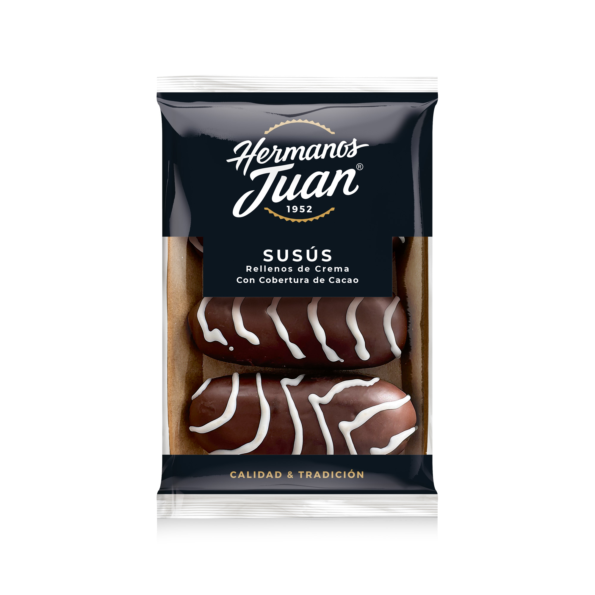 Harina de TRIGO, grasas vegetales (palma, palmiste totalmente hidrogenada) en proporción variable, azúcar, agua, jarabe de glucosa y fructosa, cacao desgrasado en polvo (4%), humectantes: E-420 y E-422, levadura, HUEVO (2%) (*), emulgentes: E-471, E-472e, E-481 y lecitina de SOJA, almidón modificado de maíz, aceite de girasol, sal, dextrosa, gluten de TRIGO, gasificantes: E-500 y E-450, estabilizantes: E-516 y E-412, correctores de acidez: E-575 y E-334, LECHE desnatada en polvo, LACTOSA, conservadores: E-282 y E-202, espesante: E-460i, E-466 y E-415, harina de SOJA, aromas, harina de arroz, colorantes: carotenos y extracto de paprika, agente de tratamiento de la harina: E-300 y gelificante: E-407. (*) Huevos de gallinas sueltas en el gallinero. Puede contener trazas de frutos de cáscara, mostaza, granos de sésamo y/o productos derivados.
